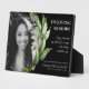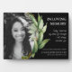 A wonderful delicate funeral memorial plaque, designed with a photograph of your loved one framed with greenery foliage and white florals, a title 'In loving memory', a tribute message, their name and dates. This memorial plaque allows friends and family to display a photo of a person they love and miss deeply, in their home with love and pride. It's stylish yet simplicity in design will enhance the photo and will act as a tribute keepsake for everyone to cherish forever.