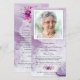 On the back, against the same serene purple and white watercolor wash background, there is ample space for funeral poems, verses, prayers, and a heartfelt thank-you message. This card becomes a poignant keepsake, embodying the cherished memories shared among family and friends.