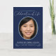 Celebration of life memorial service oval photo program in dark navy blue, sky blue and white. Personalise with the name and a photo of your loved one in an oval frame on the front plus your inside your service and obituary details with two further photos and a poem and with thanks on the back. Photo flanked by two sweeping hearts. Other colour options are available or can be created on request. Original art and design by www.mylittleeden.com