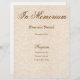 Memorial Service Program on parchment style background with script In Memoriam headline. Customise all text for a memorial celebration of life or program. A memorial celebration event is a wonderful way to share memories and pay tribute to a family member or friend, either in addition to, or instead of, a traditional funeral service. Use this flyer to design a custom program for any memorial service. Please contact me at the "created by" link below if you would like assistance with customising.