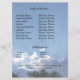 A program for a memorial service features sun rays, clouds, and blue sky as the background. A photo of the deceased loved one that has the background removed is featured in the lower right corner. "In Loving Memory" and the name of the deceased is written on the front. On the back is the Order of Services and Pallbearers. The quote, "When someone you love becomes a memory, the memory becomes a treasure," is displayed at the bottom of the backside. All text and photos are set up as templates to be personalised.