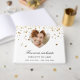 A stylish white background with golden hearts. With the text: Forever in our hearts, written with an elegant hand lettered style script. Add a name and dates, a photo inside the heart shaped frame. Use a square photo for best result.