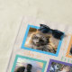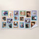 This personalised photo beach towel in a cool and colourful design has room for 18 of your favourite pictures and the option to add a printed name for tons of summer fun. Each photo is set within a border of sky blue, purple, green, light teal and orange sherbet which are scattered all over the custom beach towel in a crazy quilt style collage design on a soft grey background. Text in matching colours - memories, family, friends and fun - with a template to add a name is the finishing touch that will make this personalised photo beach towel the envy of the pool or the seaside.