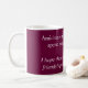 A white and magenta mug with a latin phrase and the english translation underneath. "I hope that the memory of our friendship will be everlasting" by the Roman lawyer Cicero, I think it's a rather sweet phrase :)