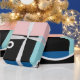 Memphis abstract poster design. Face geometric make you smile. Blue, pink, black, and white. 80s and 90s style.