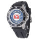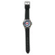 Has heft and feel of expensive stainless steel quartz wrist watches. Solid construction and good looks. Although it had a really top quality rubber strap, I substituted a stainless steel "Shark" style mesh strap, which I think is the most comfortable strap available. Perfect. True colors of original image. Clear, crisp image precisely aligned and spaced.