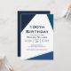 Men's 100th birthday invitation with a blue geometric design. Personalise this 5x7 invite with your party details.