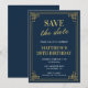 Elegant 38th birthday invitations Men Save the date Navy Gold chic modern