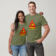 I give wanted to give this a 4 instead of a 5 because these Basic DARK T0shirts run unexpectedly SLIM or Narrow. Which is great if you do not have a potbelly, but I have a paunch. It isn't the shirt's fault that I've got a beer belly. The design and shirt itself is a quality cotton shirt. The color is more of a deep purple, but still a very pretty color. The Basic DARK T-shirts run a bit SLIMMER than the Basic Ts. The neck is a fraction narrower (or seems to be narrower) also. I'm a paunchy middle-aged woman and my neck is 12 inches (31cm) thick and the neckline fell about the same as in the photo of the man, and I had the desire to tug it a bit. So if you're a thick necked man or like loose shirts, be aware these are slimmer shirts. Once I get rid of my lockdown paunch it'll look great. The shirt washed well in cold water with no apparent bleeding. We don't have a dryer, so it hung dry. Did not shrink. Love the colors and the design. The design looks smaller on my shirt than it does on the model on-line. But still, it looks good on the shirt. The printing looks as it does on the model, just the size seems fractionally smaller. Washed garment in cold water, hung dry and design appeared unaffected.