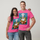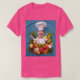 I give wanted to give this a 4 instead of a 5 because these Basic DARK T0shirts run unexpectedly SLIM or Narrow. Which is great if you do not have a potbelly, but I have a paunch. It isn't the shirt's fault that I've got a beer belly. The design and shirt itself is a quality cotton shirt. The color is more of a deep purple, but still a very pretty color. The Basic DARK T-shirts run a bit SLIMMER than the Basic Ts. The neck is a fraction narrower (or seems to be narrower) also. I'm a paunchy middle-aged woman and my neck is 12 inches (31cm) thick and the neckline fell about the same as in the photo of the man, and I had the desire to tug it a bit. So if you're a thick necked man or like loose shirts, be aware these are slimmer shirts. Once I get rid of my lockdown paunch it'll look great. The shirt washed well in cold water with no apparent bleeding. We don't have a dryer, so it hung dry. Did not shrink. Love the colors and the design. The design looks smaller on my shirt than it does on the model on-line. But still, it looks good on the shirt. The printing looks as it does on the model, just the size seems fractionally smaller. Washed garment in cold water, hung dry and design appeared unaffected.