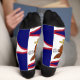 Crafted with meticulous attention to detail, these socks are more than just a wardrobe essential; they're a celebration of American Samoa's unique cultural heritage. The design proudly showcases the blue field with a white star and a red and white stripe, symbolising the territory's connection to the United States and its Pacific island identity.