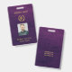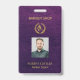 Custom identification barber salon employee photo badge on an elegant purple leather look background with faux gold scissors and laurel wreath logo and typography script. ++++++++++ Easy to personalise with your business name, logo, employee photo, name and title and your text on the backside. +++++++++++++ Suitable for elegant luxury men barber hairstyle grooming salon, men store or any other elegant professional exclusive businesses.