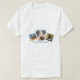 This basic t-shirt is shown in white with a cute polaroid snapshot collage of Yellowstone geyser, bison, bear and wolf prints.