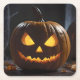 Menacing Halloween Pumpkin, Square Paper Coaster