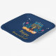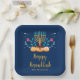 Hanukkah party plates with a menorah and sufganiyots. The words can be changed to suit your own details or requirements