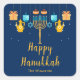 Hanukkah party sticker with a menorah and sufganiyots. The words can be changed to suit your own details or requirements