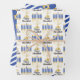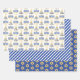 Great for celebrating Hanukkah season, this design features our original menorah vector graphic with script text calligraphy, "Happy Hanukkah" greeting on the 1st sheet, a simple blue and white striped pattern on the 2nd sheet and a gold tone Star of David pattern on a blue background on the 3rd sheet. Composite design by Holiday Hearts Designs (rights reserved).
