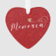 Menorca flag in a heart, in scripted font Christmas ornament / decoration.
