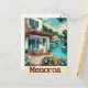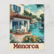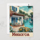 This charming vintage poster showcases the peaceful beauty of Menorca’s rocky coastline, where a classic white Mediterranean house sits perched above the turquoise sea. Framed by warm stone, vivid blue skies, and sun-faded textures, the artwork evokes the serene elegance of Balearic island life in the mid-20th century. A perfect piece for lovers of Mediterranean scenery and nostalgic travel art.
