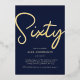 Help get the celebrations to a start in style with this 60th birthday foil party invitation which can be personalised to include his birthday party details. The design is in a modern, elegant and classic midnight blue.
