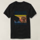 I give wanted to give this a 4 instead of a 5 because these Basic DARK T0shirts run unexpectedly SLIM or Narrow. Which is great if you do not have a potbelly, but I have a paunch. It isn't the shirt's fault that I've got a beer belly. The design and shirt itself is a quality cotton shirt. The color is more of a deep purple, but still a very pretty color. The Basic DARK T-shirts run a bit SLIMMER than the Basic Ts. The neck is a fraction narrower (or seems to be narrower) also. I'm a paunchy middle-aged woman and my neck is 12 inches (31cm) thick and the neckline fell about the same as in the photo of the man, and I had the desire to tug it a bit. So if you're a thick necked man or like loose shirts, be aware these are slimmer shirts. Once I get rid of my lockdown paunch it'll look great. The shirt washed well in cold water with no apparent bleeding. We don't have a dryer, so it hung dry. Did not shrink. Love the colors and the design. The design looks smaller on my shirt than it does on the model on-line. But still, it looks good on the shirt. The printing looks as it does on the model, just the size seems fractionally smaller. Washed garment in cold water, hung dry and design appeared unaffected.