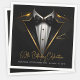 Mens black and gold birthday party paper napkins with black and gold tuxedo, bow tie and pocket square. These black and gold birthday party napkins are easily personalised for your event by changing the text as needed. These tuxedo paper napkins are great for corporate events, retirements, bachelor parties and any black tie formal event. Ad your text, logo, images, etc., to personalise.