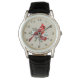Men's red cardinal watch, grey background with gold trim. Many different watch colours and styles to choose from.