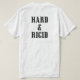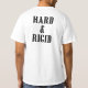 Unique custom motorcycle t shirt for men. White short sleeve t shirt with black and white motorcycle art design on front and graphic text design "Hard And Rigid" on back.. Cool t shirts for guys, great gift idea