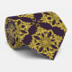 This dark purple necktie has a gold floral pattern.