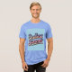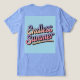 This blue t-shirt features a retro-style typographic design featuring the text "Endless Summer" in a flowing, cursive script font on a light blue background. The Endless Summer script is gradient. The image is on the front and back of the t-shirt. The t-shirt is a light blue men's Bella Canvas Tri-Blend t-shirt.