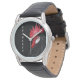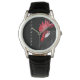 Men's FEARLESS with black rooster on black background, black leather strap watch.