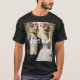 I give wanted to give this a 4 instead of a 5 because these Basic DARK T0shirts run unexpectedly SLIM or Narrow. Which is great if you do not have a potbelly, but I have a paunch. It isn't the shirt's fault that I've got a beer belly. The design and shirt itself is a quality cotton shirt. The color is more of a deep purple, but still a very pretty color. The Basic DARK T-shirts run a bit SLIMMER than the Basic Ts. The neck is a fraction narrower (or seems to be narrower) also. I'm a paunchy middle-aged woman and my neck is 12 inches (31cm) thick and the neckline fell about the same as in the photo of the man, and I had the desire to tug it a bit. So if you're a thick necked man or like loose shirts, be aware these are slimmer shirts. Once I get rid of my lockdown paunch it'll look great. The shirt washed well in cold water with no apparent bleeding. We don't have a dryer, so it hung dry. Did not shrink. Love the colors and the design. The design looks smaller on my shirt than it does on the model on-line. But still, it looks good on the shirt. The printing looks as it does on the model, just the size seems fractionally smaller. Washed garment in cold water, hung dry and design appeared unaffected.