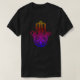 Bold neon design Hamsa Hand with evil eye t shirt for men..The Hamsa is a hand-shaped symbol that often includes an eye to ward off the evil eye, a malicious stare that is believed to cause bad luck, illness, or death. It can also be seen as a symbol of protection, power, and strength.