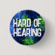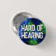 Your father will love this tropical badge by JessicaAmber. This button features the slogan 'Hard of Hearing' in a bold white font, surrounded by a pattern of green and blue monstera leaves, on a black background. You can edit the text as needed. A great accessory for your next summer holiday. 🌿 For more deafness pins, visit my Zazzle store Zazzle.com/DriftwoodAndDreams 🌿 For custom orders, message me on Zazzle