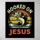 Mens Hooked On Jesus Christian Fishing-shirt Funny Poster