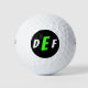 Never lose your ball again with these three-initial monogram golf balls. This design features a modern font in white and green against a black background.