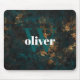 Modern distressed gold and navy teal men's monogram mouse pad. Design features of teal initial and a name in trendy white lettering on a distressed background.