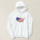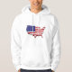 Men's basic pullover hoodie is shown in white with a patriotic USA Flag States graphic print, perfect for July 4th holiday or any other patriotic moment, this hoodie is made of quality materials and craftsmanship and is available in more colours.