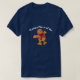 Crew neck and short sleeves t-shirt for men is shown in navy blue with a holiday gingerbread man graphic. Text reads: Wanna Piece of Me.