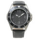 A men's stainless steel water resistent divers and military watch.Depth to 100 metres .Black face with white large numerals.Leather straps in black,and 1 yrs warranty.