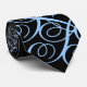 Men's tie is shown in black with a blue tone ribbon print.
