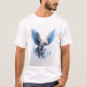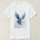 The image shows a majestic white eagle with striking blue accents, soaring through the air with its wings outstretched. The eagle appears to be breaking through a barrier of ice or crystal shards, adding a sense of power and determination to the design.