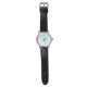 Men's Vintage Black Leather Strap Watch with Light Blue Twirl.