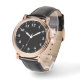 This men's rose gold color vintage watch is shown with a black color face with white numbers.