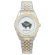 This stylish classic men's two tone colour watch is shown with a native art print of a buffalo.