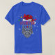 I give wanted to give this a 4 instead of a 5 because these Basic DARK T0shirts run unexpectedly SLIM or Narrow. Which is great if you do not have a potbelly, but I have a paunch. It isn't the shirt's fault that I've got a beer belly. The design and shirt itself is a quality cotton shirt. The color is more of a deep purple, but still a very pretty color. The Basic DARK T-shirts run a bit SLIMMER than the Basic Ts. The neck is a fraction narrower (or seems to be narrower) also. I'm a paunchy middle-aged woman and my neck is 12 inches (31cm) thick and the neckline fell about the same as in the photo of the man, and I had the desire to tug it a bit. So if you're a thick necked man or like loose shirts, be aware these are slimmer shirts. Once I get rid of my lockdown paunch it'll look great. The shirt washed well in cold water with no apparent bleeding. We don't have a dryer, so it hung dry. Did not shrink. Love the colors and the design. The design looks smaller on my shirt than it does on the model on-line. But still, it looks good on the shirt. The printing looks as it does on the model, just the size seems fractionally smaller. Washed garment in cold water, hung dry and design appeared unaffected.