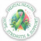 Sticker to help spread awareness for mental health awareness. A green awareness ribbon with the words hope, strength and support.
