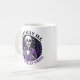 Embrace the chill with this honest and hilarious "Mentally Ill But Totally Chill" mug! The design features a stylized skeleton wearing a purple shirt, taking a calm sip of coffee, and framed by a laurel wreath and starry background.