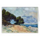 Menton Seen from Cap Martin (1884) by Claude Monet is a vintage impressionist fine art seascape painting. Trees, the ocean and the coastal shoreline are in the foreground with the town and mountains in the background. A sunny day with some fluffy clouds in the sky. A view of the city of Menton in the south of France from the coast of Cap Martin.