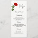 This Menu Card template is shown on the basic paper in white with a lovely red rose print design. Script and standard text in a black colour.